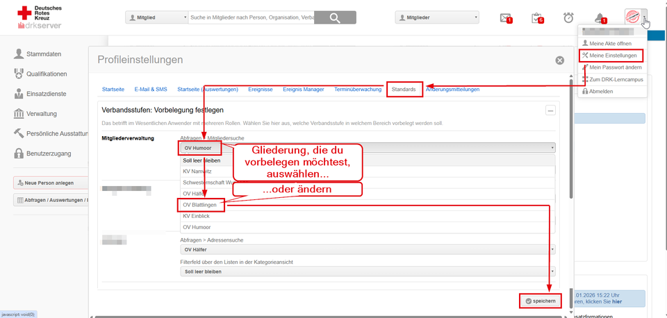 Weiter oben hast du gelesen, dass du deine Organisation, deine Gliederung, eintragen solltest. Nur dann kommen die Daten raus, die du vor Ort brauchst. Hier ist ein Tipp, damit du das nicht jedes Mal machen musst, wenn du die Auswertungen aufsuchst: