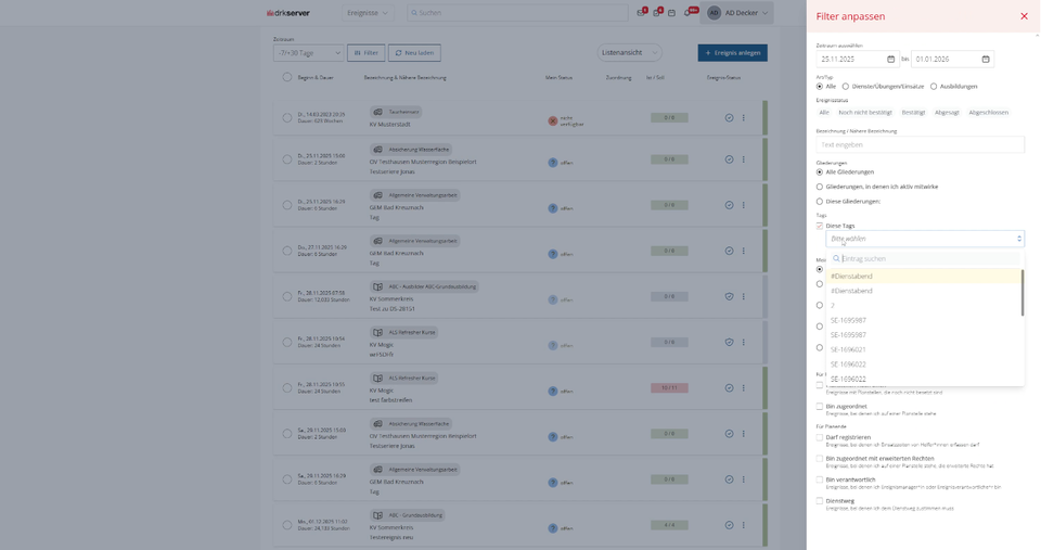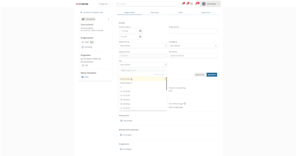 Die Funktionen des Ereignismanagement Serientermine werden Schritt für Schritt umgesetzt. Wenn es konkret wird, wird das ebenfalls hier stehen. Das gilt auch für offene Testphasen und für ein konkretes Datum zur Veröffentlichung. Mehr Infos kriegst du dann auch über den News-Bereich der drkserver-App und den News-Bereich der drkserver-Webseite.